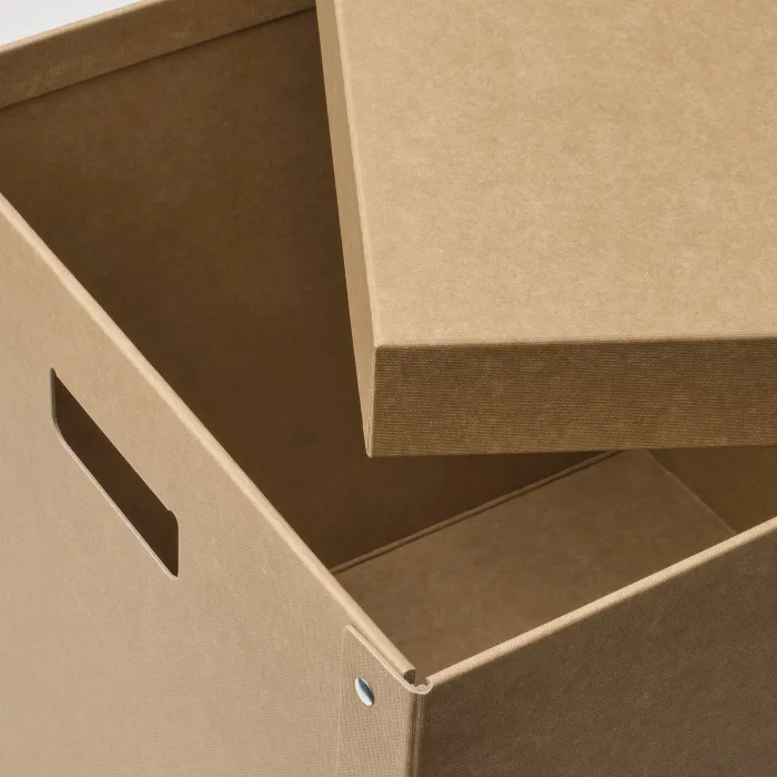 Контейнер имеет прочную конструкцию и вырезанные ручки, что позволяет легко удалить с полки и перемещаться.
