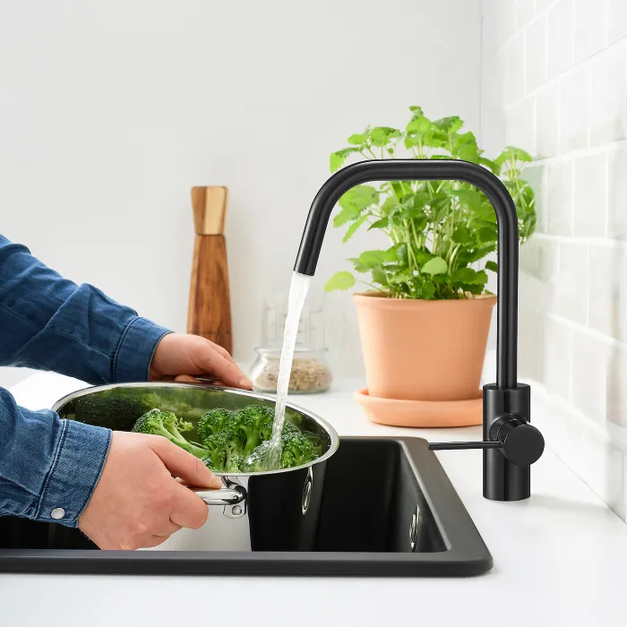 Аккумулятор älmaren уменьшает потребление воды и энергии. Высокий носик облегчает мыть большие горшки, и его качество гарантирует многолетнее мытье и полоскание.
