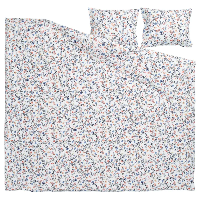 IKEA BRUDKRUSBÄR(006.147.30) одеяло и 2 подушки, белый белый/цветочный рисунок