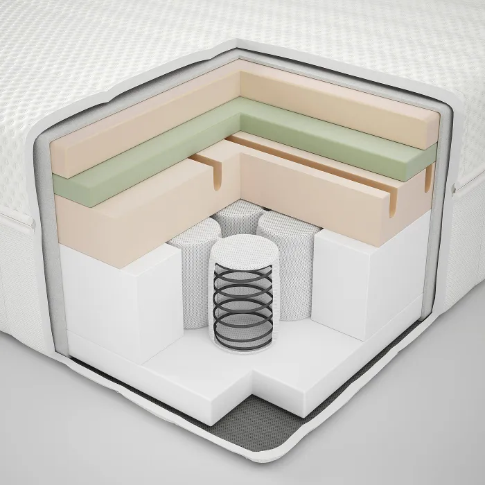 Хорошо -лансированный гибридный матрас, который соединяет несколько слоев пены с карманными пружинами, чтобы проснуться каждое утро.