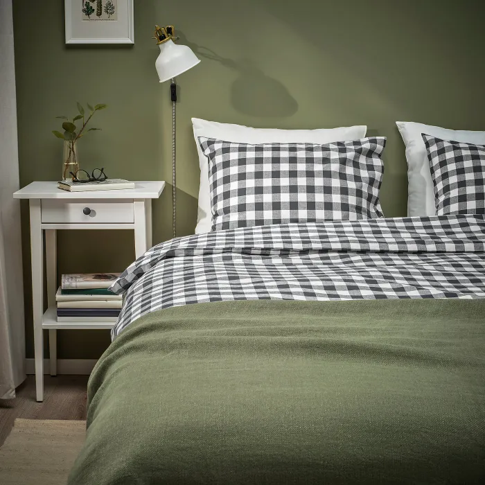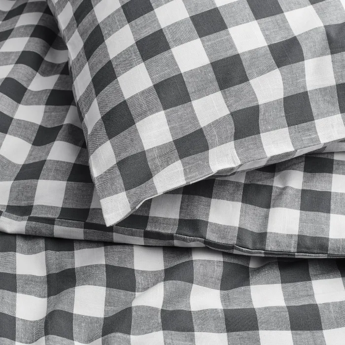 Набор постельных принадлежностей состоит из 100% органического хлопка с сертификатом GOTS. Этот натуральный материал передает воздух, поглощает влагу и приятен в контакте с кожей. Изготовлен из окрашенной пряжи с небольшой антрацитой-белой решеткой.