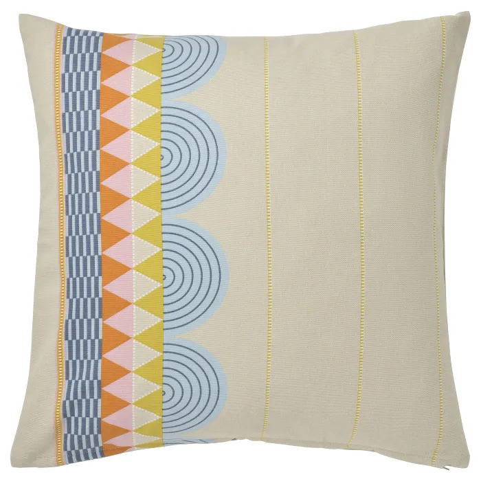 Оригинальная комбинация линий, колес и треугольников в приподделенных цветах дает этой мягкой хлопковой наволоте уникальный характер. Часть коллекции Ommjänge, которая впечатляет современным дизайном, вдохновленным шведским народным искусством.