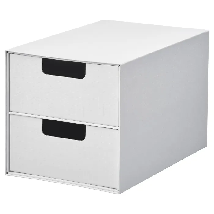 Вы можете установить 2 мини -комода друг на друга, чтобы полностью использовать пространство на полке или столе.