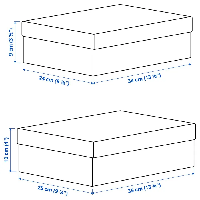 Завершите: 2 ящика для хранения (22,5x32x11,5 см и 24,5x34x12,5 см).