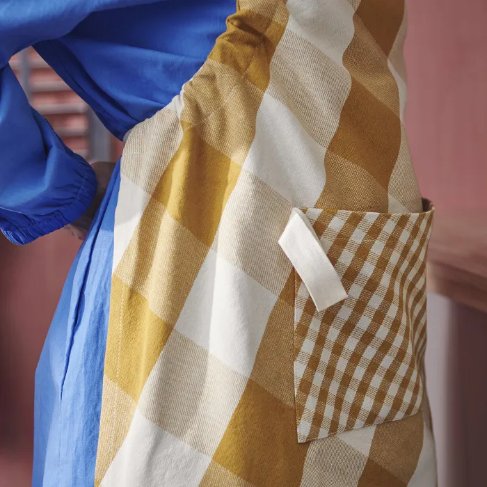 Будьте готовы сделать соки, джемы и другие консервы - не рискуя пятнами на одежде. Мягкий фартук с классическим белым и желтым клетчаткой может быть легко адаптирован к вашей фигуре.