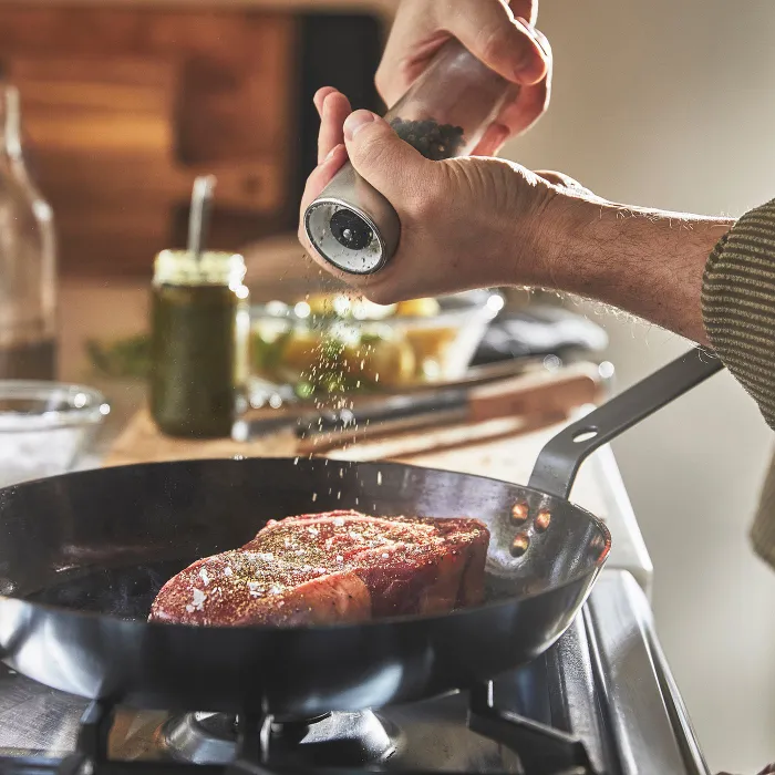При правильной приправе в сковороде из углеродной стали производится специальное покрытие, благодаря которой вы можете приготовить вкусные блюда, не опасаясь, что они будут придерживаться. Кроме того, чем больше вы его используете, тем лучше это становится.