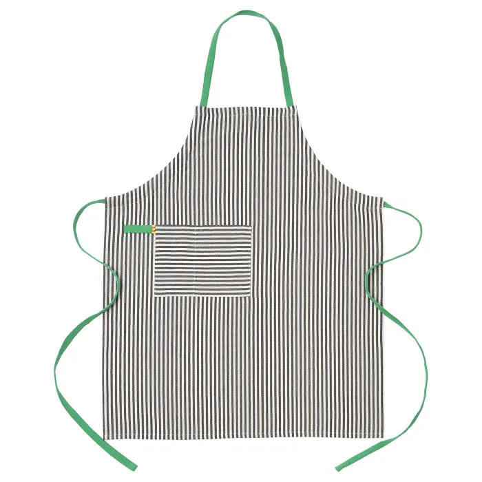 Белые и черные полосы, зеленый ремешок и желто-красная вышивка делают этот фартук ручной работы-стильное дополнение, которое защитит вашу любимую рубашку или блузку во время приготовления или гриля.