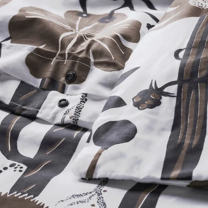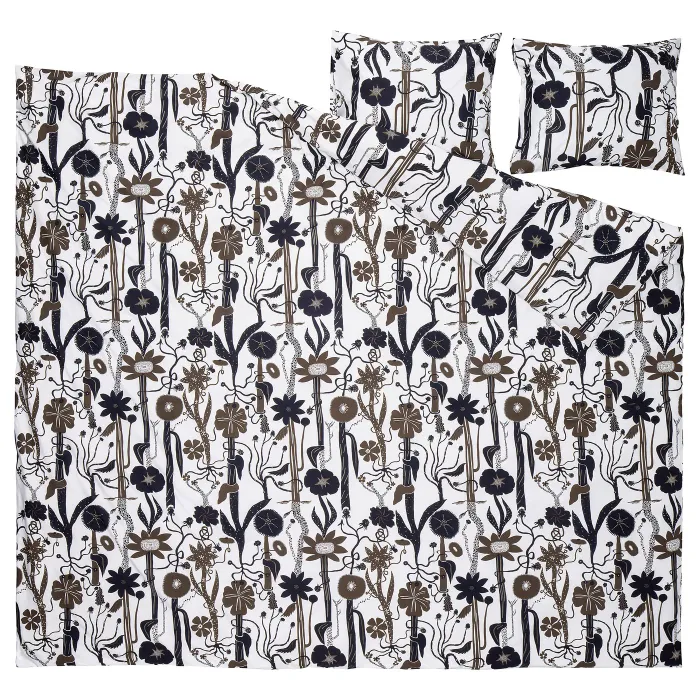 IKEA LUNDSKAFTING(206.063.43) одеяло и 2 подушки, белый/черный/коричневый