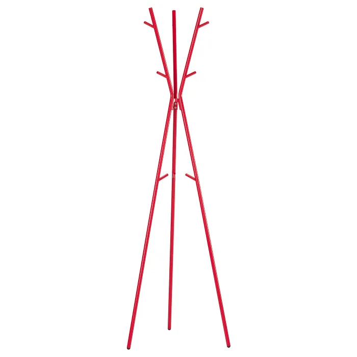Ярко -красная вешалка разрушит декор зала, и благодаря крючкам, расположенным на разных высотах, это поможет вам организовать довольно много курток и мешков.