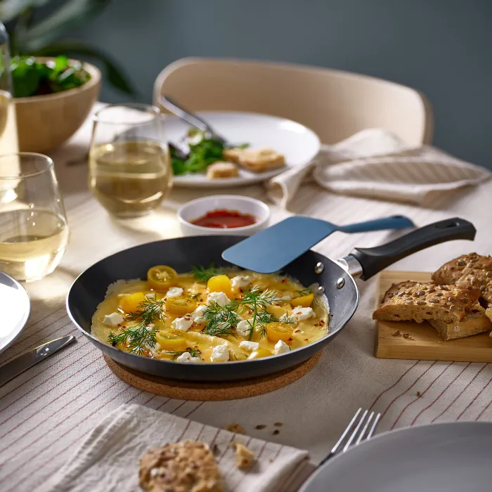 Эта легкая сковорода имеет непревзойденное покрытие, которое предотвращает прилипание блюд на поверхность, а также удобную ручку, которая облегчает подъем кастрюли с тарелки, когда пришло время подавать пищу.