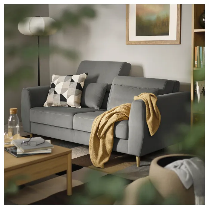 Современный диван, который соответствует большинству интерьеров. Одно простое движение, и спинки удлиняются, обеспечивая удобную поддержку для головы.