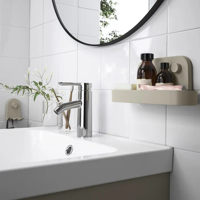 Практическое место для мыла, шампуня и других вещей, необходимых в душе или в раковине.