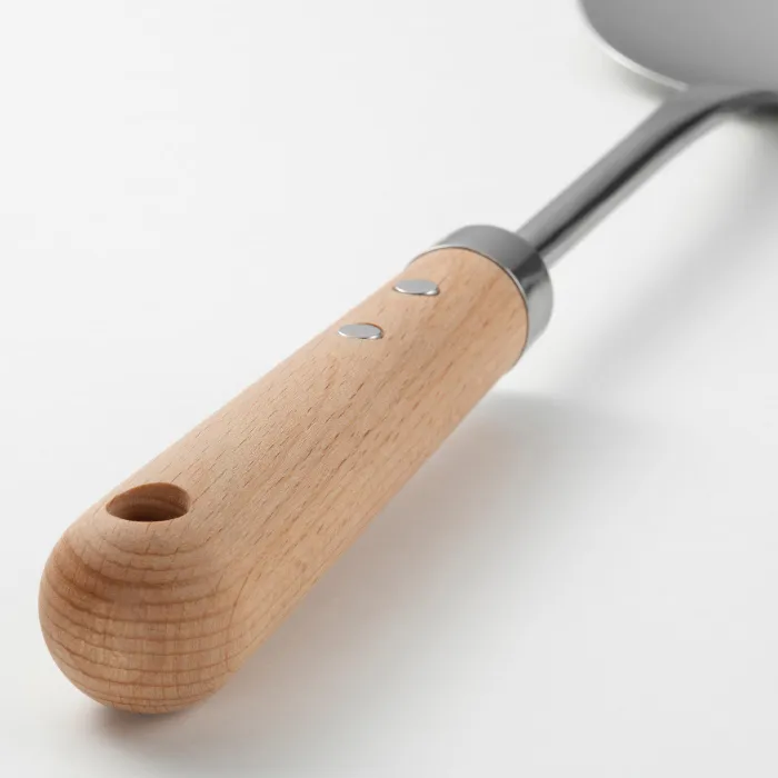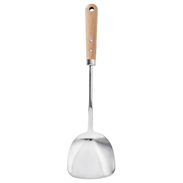 Клинок Wok имеет длинную твердую деревянную ручку, которая обеспечивает безопасное расстояние от горячего блюда, а также округлый шпатель, который соответствует форме вока. После приготовления вы можете повесить лопасть на крючке.