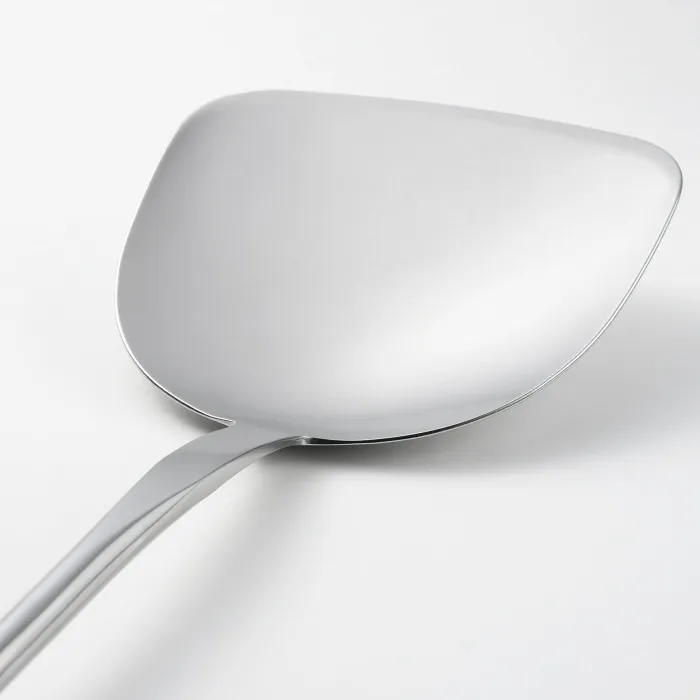 Округлый край лезвия подходит для формы вока, так что вы можете быстро и тщательно смешать ингредиенты на дне и по бокам сковороды.