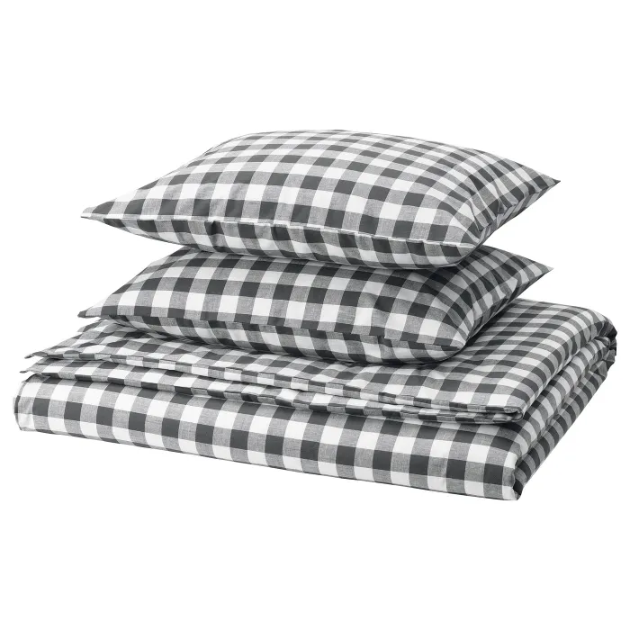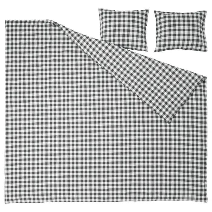 IKEA EKTANDVINGE(505.853.82) одеяло и 2 подушки, Белый/клетчатый антрацит
