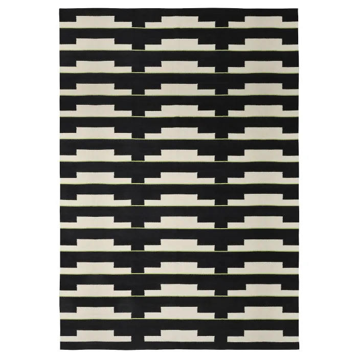 IKEA STOCKHOLM 2025(505.938.10) Плоский тканый коврик, Черное/белое/светло -зеленое ручное плетение