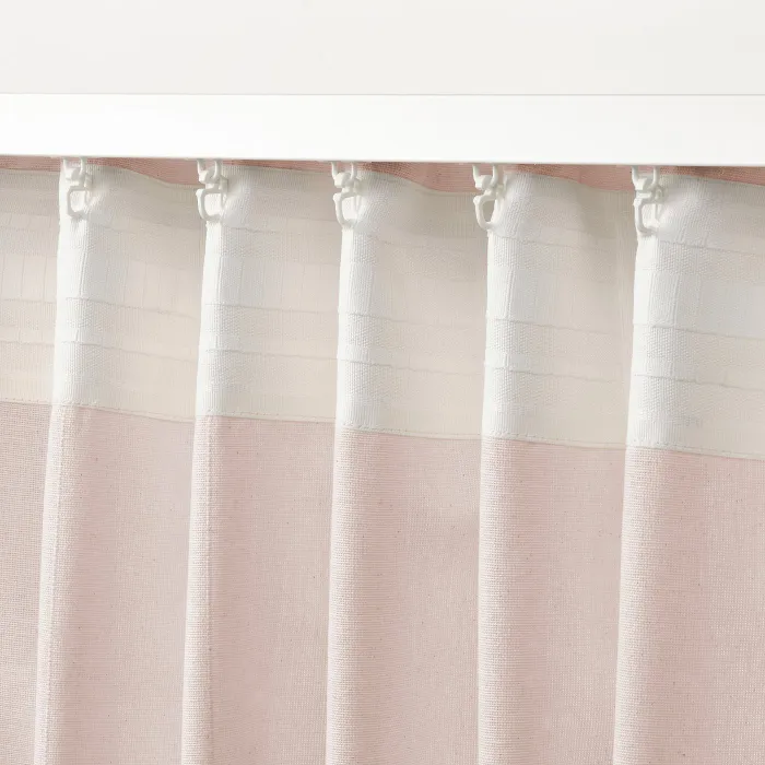 Светло -розовые занавески с лентой с линейкой имеют полосатую поверхность, которая дает им сильный характер. Идеально подходит для гостиной или спальни, также в сочетании с шторами. Облигации - это интересное украшение.