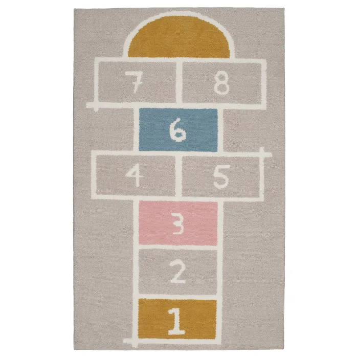 Резиновое дно держит ковер на своем месте, когда ребенок бежит за ним или играет на нем.