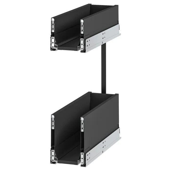 Выдвижной ящик, предназначенный для гармоничной темной кухни в современном стиле. Ящик идеально подходит в узких пространствах, сохраняя стиль и функциональность кухни.