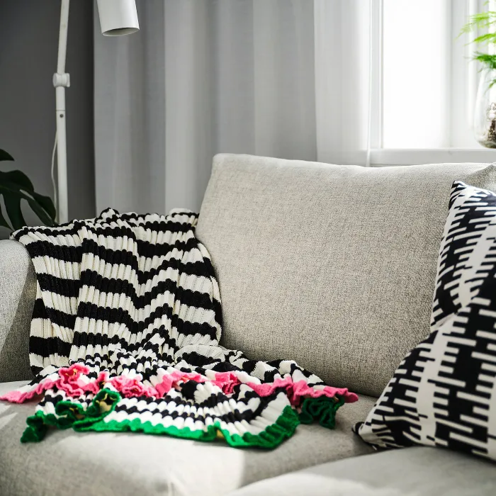 IKEA MOSSMOTT(805.821.17) плед, черный/белый
