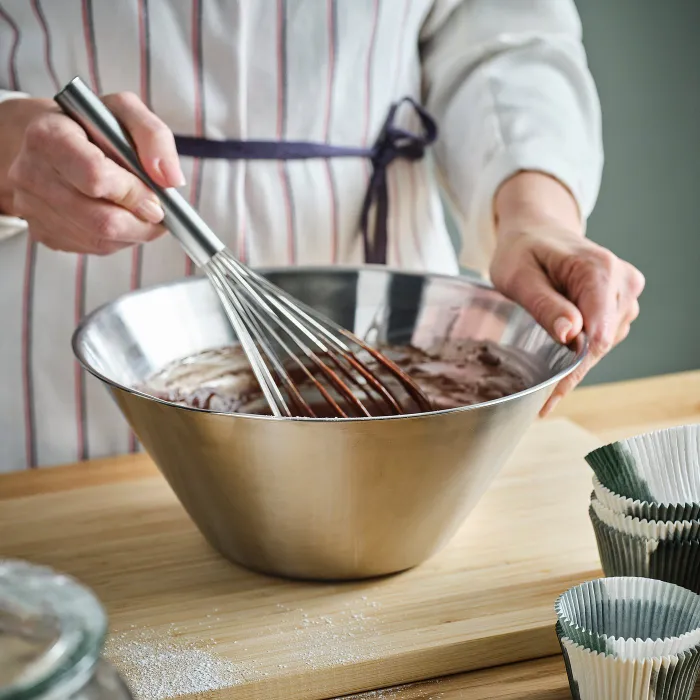 Прочные миски из нержавеющей стали никогда не бывают слишком большими. У этого есть емкость 4 л и практический клюв. Вы можете мыть в посудомоечной машине. Незначимая помощь при приготовлении и выпечке!