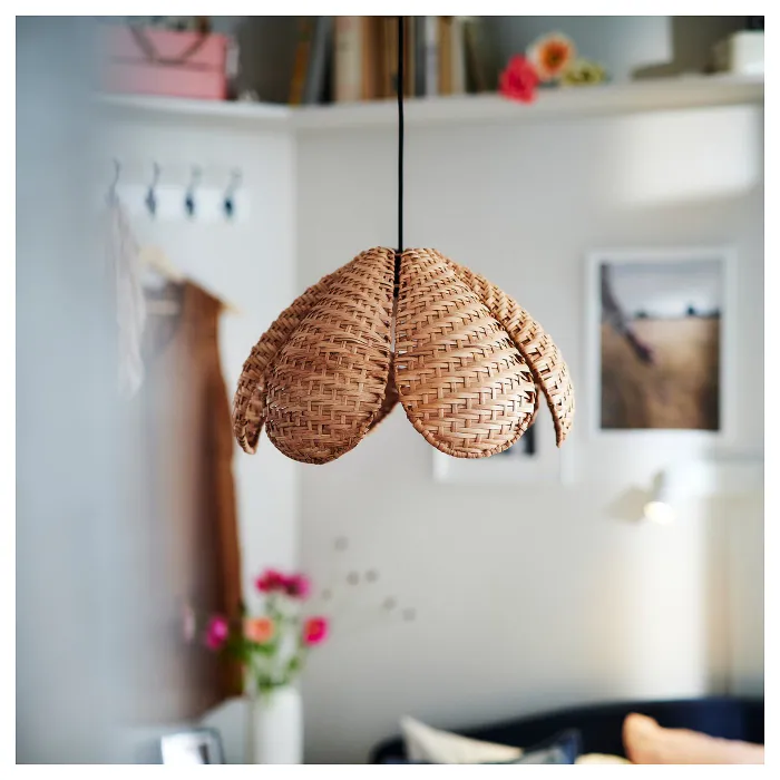 Подвесной абажур восхищает своей вневременной элегантностью и современностью. Сплетенный вручную ротанг в форме лепестков цветов обладает винтажным шармом, а плоская упаковка, в которую он упакован, является признаком современности, что облегчит транспортировку.