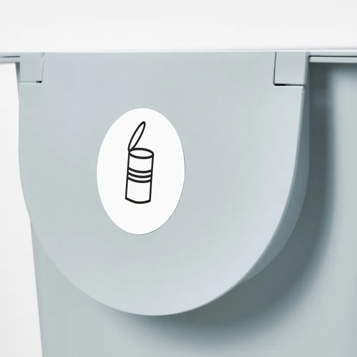 Набор включает в себя 12 круглых наклеек с различными символами, которые облегчают правильную сегрегацию отходов.