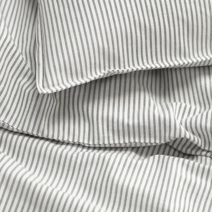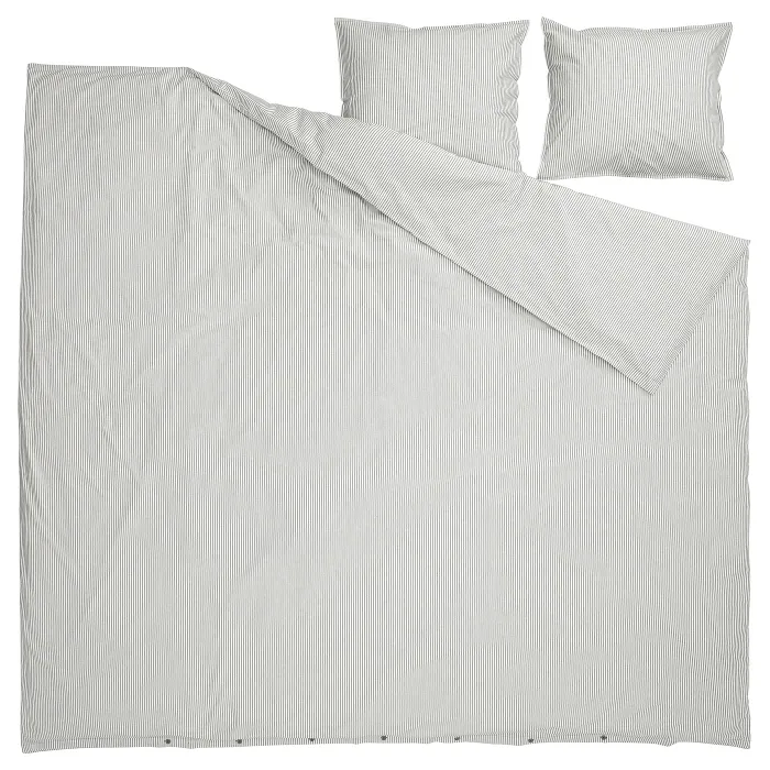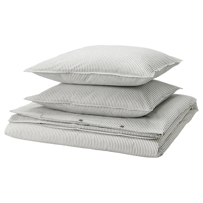 IKEA SOLFIBBLA(806.109.07) одеяло и 2 подушки, Серый белый/полосы