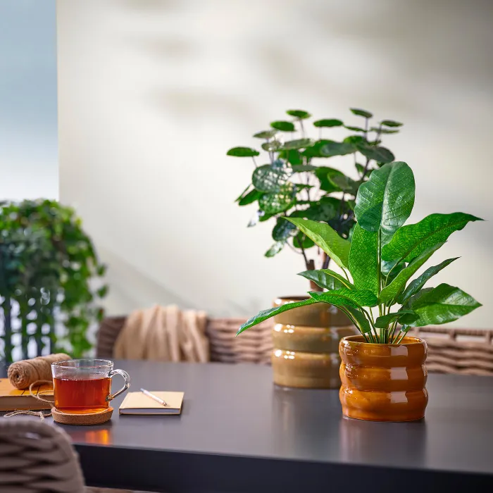 Вы можете дополнить искусственные горшечные растения, которые выглядят живыми и не теряют свежесть в течение многих лет.