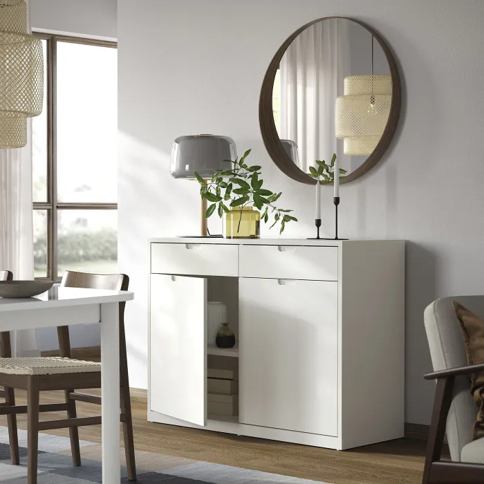 В серии Tonstad классический дизайн сочетается с красивой отделкой в сливочном цвете, придавая мебели благородный вид. Споведник обеспечивает много места для хранения, а также практическую поверхность, чтобы остановить разные вещи!