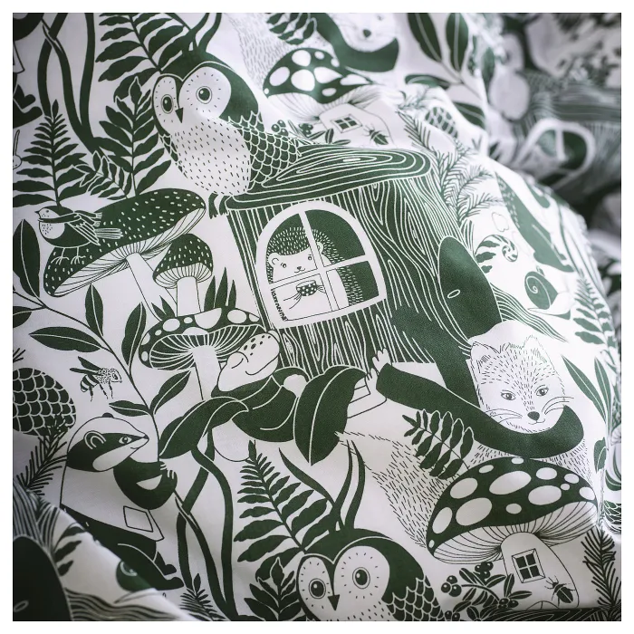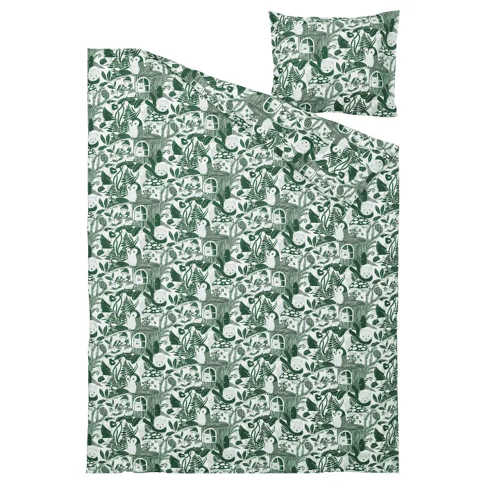 IKEA SKOGSDUVA(905.768.04) воздуховоды и наволочка, Белый зеленый/рисунок лес
