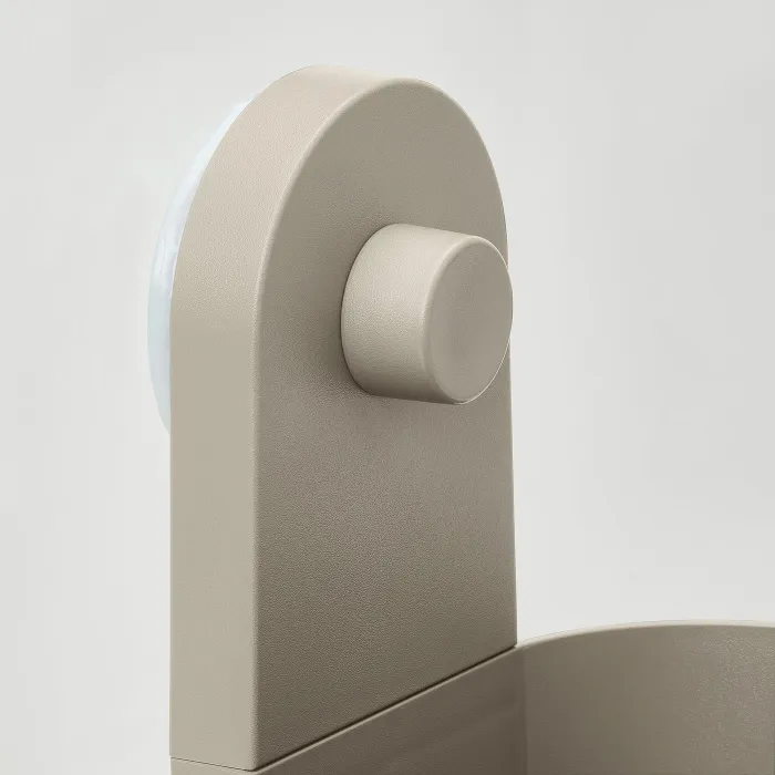Аксессуары öbonäs - это решения для хранения, которые не требуют бурения в стенах. Вот как работает магия скрытых всасывающих чашек. Простой дизайн с гладкими, закругленными рогами в сочетании с серо -разгром, создает спокойный, современный эффект.