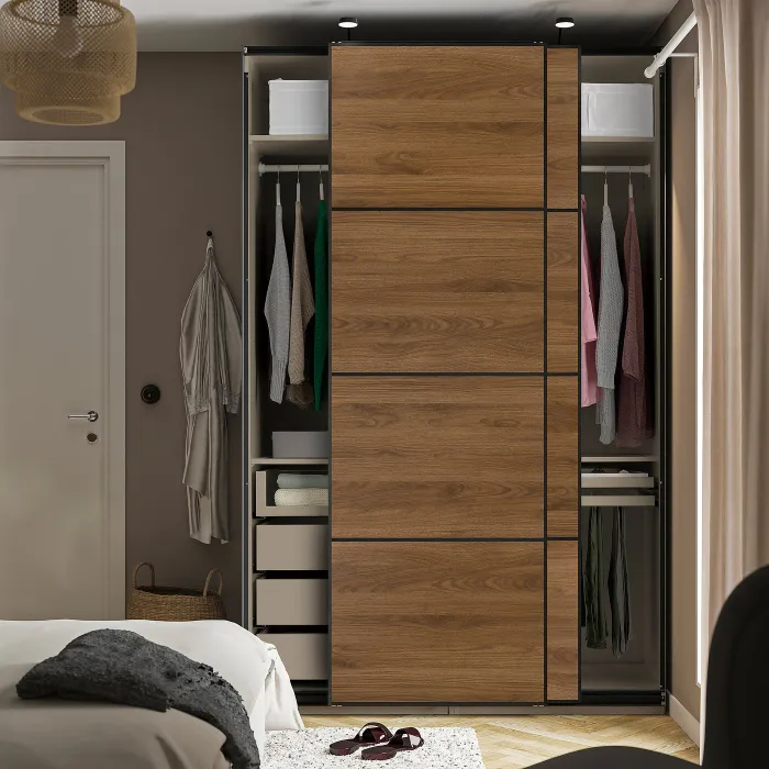 IKEA PAX / MEHAMN(096.087.63) гардероб с раздвижными дверями, серо -разгрный черный/2 -й орех