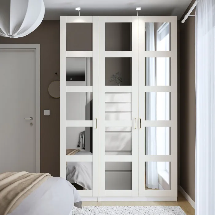Когда вы выберете зеркальную дверь, комната сразу же будет казаться большей, яркой и просторной. Это отличный способ сменить узкий коридор или небольшую спальню.