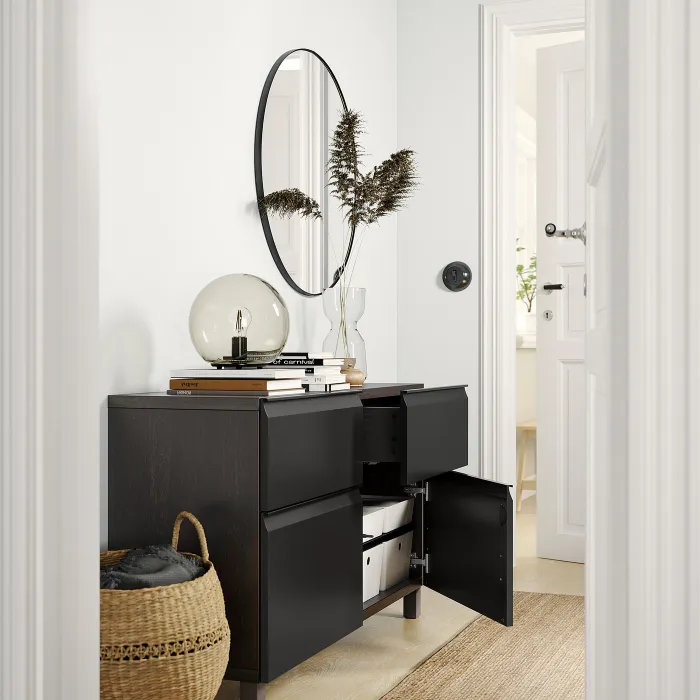 Если вы выберете тихой функции закрытия для вашей полки Bestå, мы рекомендуем заполнить фронты с ручками/ручками, чтобы можно было более удобно открыть ящики/шкафы.