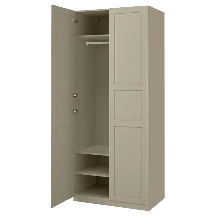 Дверь имеет одинаковый серый цвет с обеих сторон и идеально сочетается с серыми шкафами Pax.
