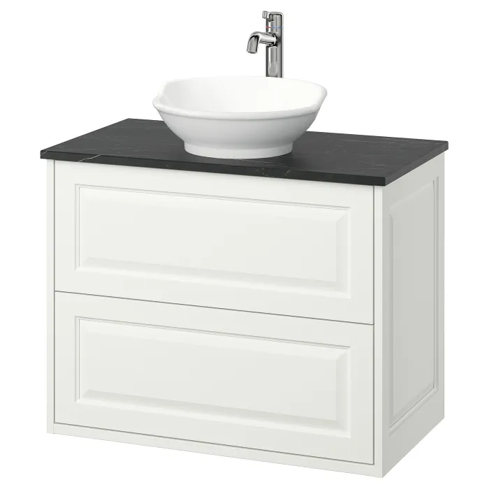Мебель для ванной комнаты Tännforsen с очарованными краями излучает классическую элегантность. Комбинация с верхней и круглой раковиной с поднятым краем привлекает внимание красивым, ремесленным внешним видом.