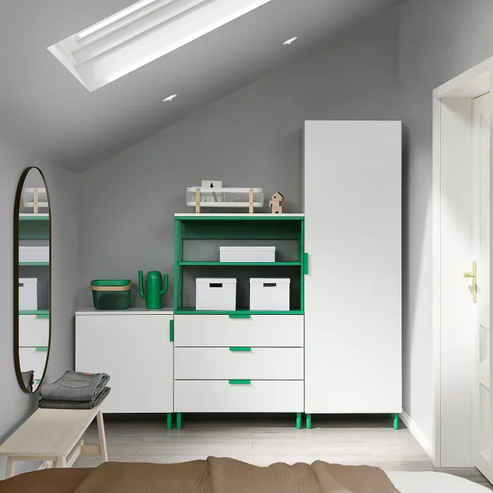Вы можете легко изменить эту комбинацию на хранение, чтобы адаптировать ее к различным потребностям или создать новый декор. Просто добавьте, вычтите или перемещайте отдельные детали.