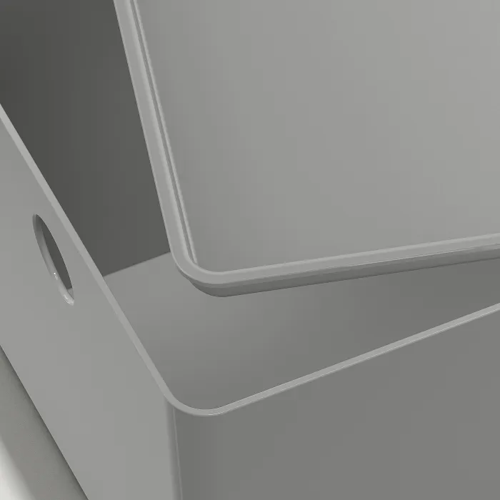 Этот контейнер является практическим местом для хранения офисных аксессуаров или мультимедийных гаджетов. Крышка защищает сохраненные предметы от пыли, а также позволяет устанавливать контейнеры друг на друга.