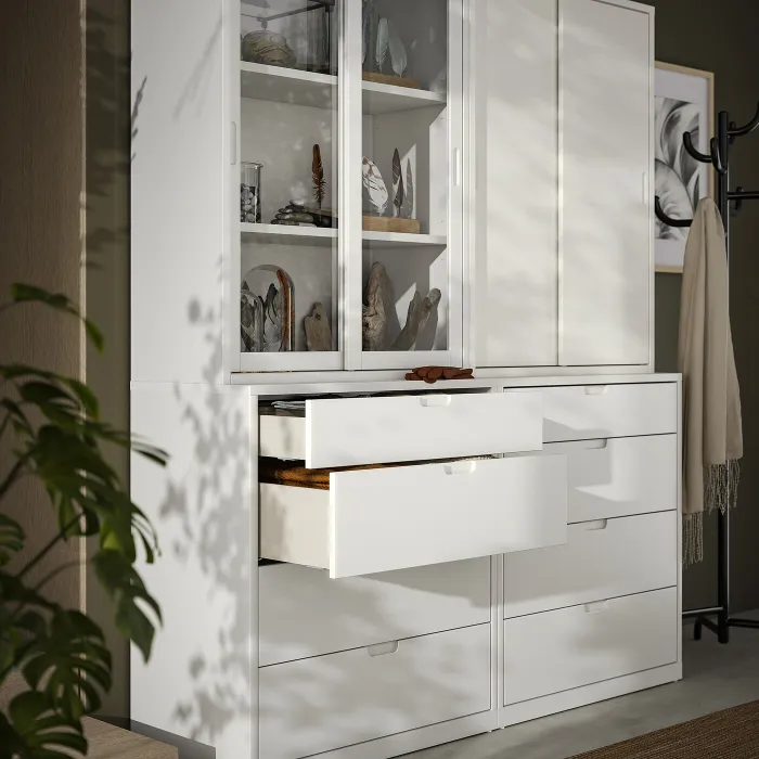 В серии Tonstad классический дизайн сочетается с восхитительной отделкой в кремовом цвете, что придает мебели драгоценный вид. Закрепите защиту и разблокируйте в сочетании с системой монтажа стен, снижает риск переворачивания мебели.