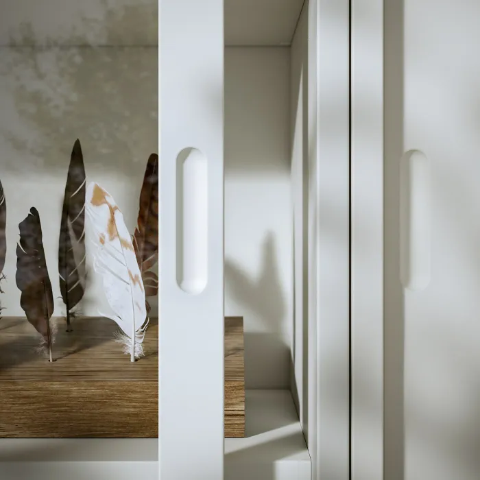 Безопасно покажите свои самые красивые вещи, защищая их от пыли. Раздвижные двери не занимают место при открытии.