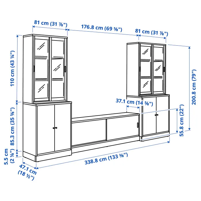 Эта комбинация для телевизора позволит вам отображать ваши любимые предметы за стеклянной дверью, в то время как кабели и электроника скрыты за закрытой дверью.