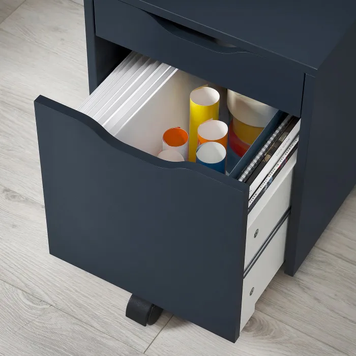 Шкаф с ящиками на колесах, который можно легко перемещать там, где вам нужно в данный момент.