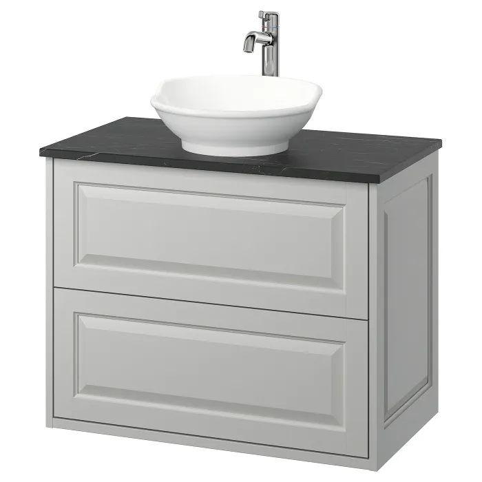 Мебель для ванной комнаты Tännforsen с очарованными краями излучает классическую элегантность. Комбинация с верхней и круглой раковиной с поднятым краем привлекает внимание красивым, ремесленным внешним видом.