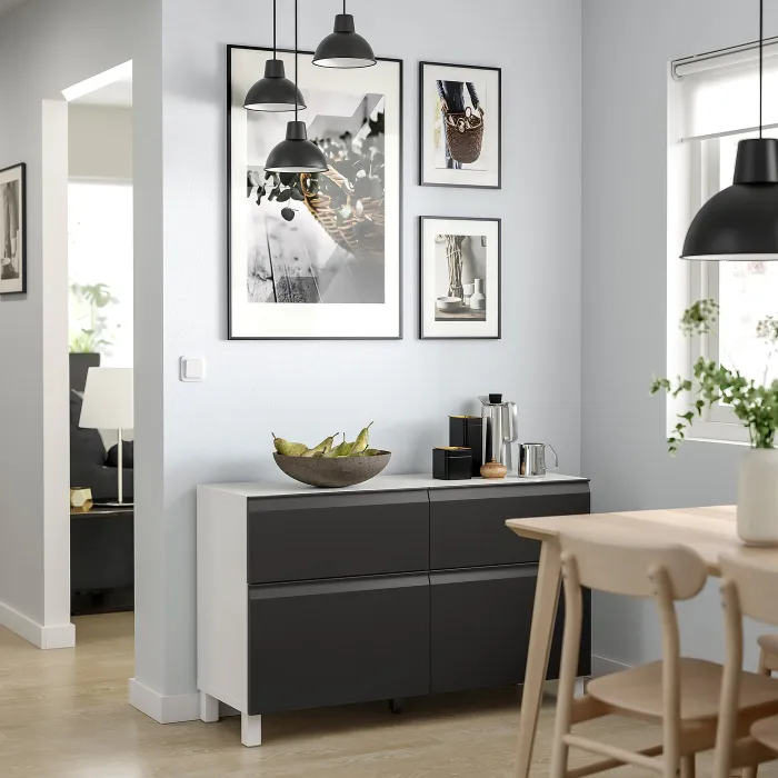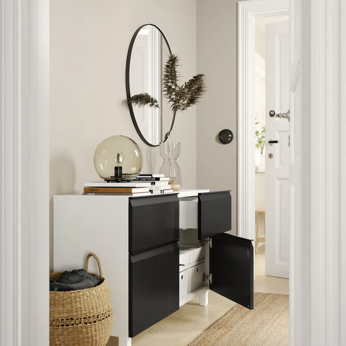 Если вы выберете тихой функции закрытия для вашей полки Bestå, мы рекомендуем заполнить фронты с ручками/ручками, чтобы можно было более удобно открыть ящики/шкафы.