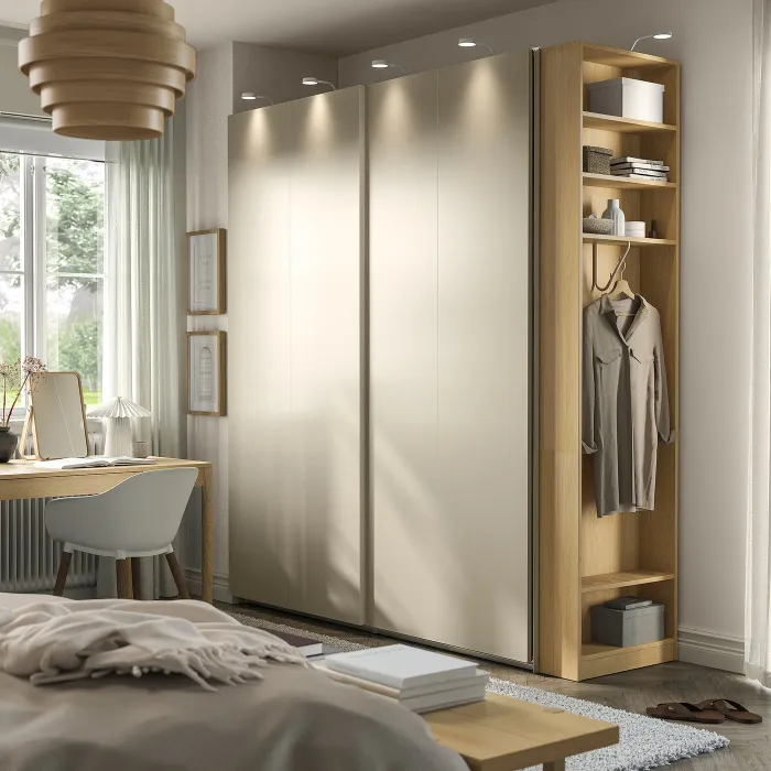 Вместо того, чтобы просматривать утром в гардеробе, вы предпочитаете готовить накануне? В сегменте, добавленном в гардероб PAX, вы можете сохранить одежду, которую вы намереваетесь вскоре надеть, или те, которые вы хотите вентилировать, прежде чем положить их в шкаф.