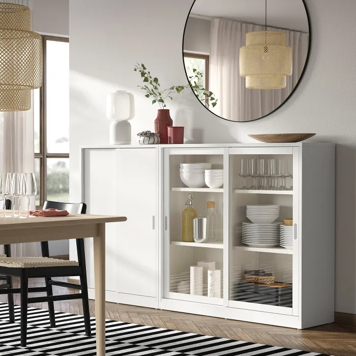 В серии Tonstad классический дизайн сочетается с восхитительной отделкой в кремовом цвете, что придает мебели драгоценный вид. В этой комбинации вы можете решить, что скрывать и что показать - вдали от пыли.