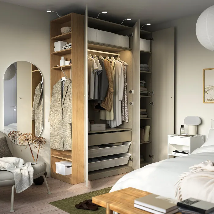 Вместо того, чтобы просматривать утром в гардеробе, вы предпочитаете готовить накануне? В сегменте, добавленном в гардероб PAX, вы можете сохранить одежду, которую вы намереваетесь вскоре надеть, или те, которые вы хотите вентилировать, прежде чем положить их в шкаф.