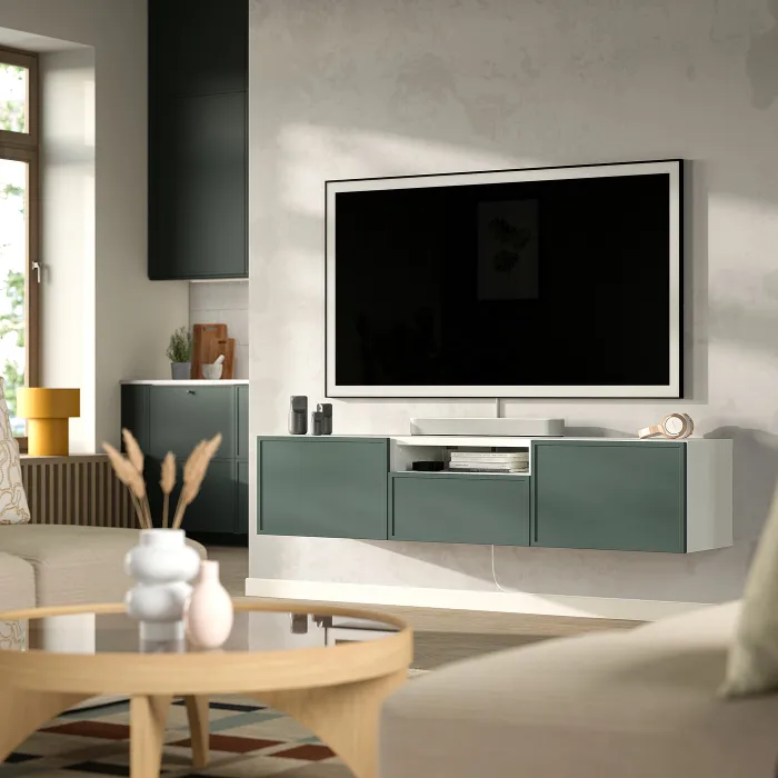 IKEA BESTÅ(896.114.84) Телевизионный шкаф, Белый/Крукмакаре темно -серый