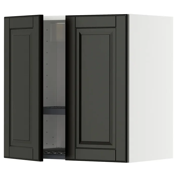 IKEA METOD(995.786.86) Настенный шкаф с капельницей/2 дверями, Biały/Bodbyn Black